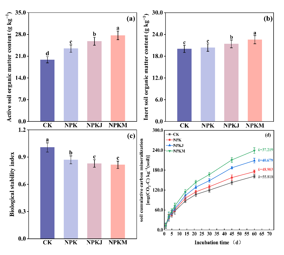 圖1 不同施肥措施對土壤有機質生物穩定性的影響