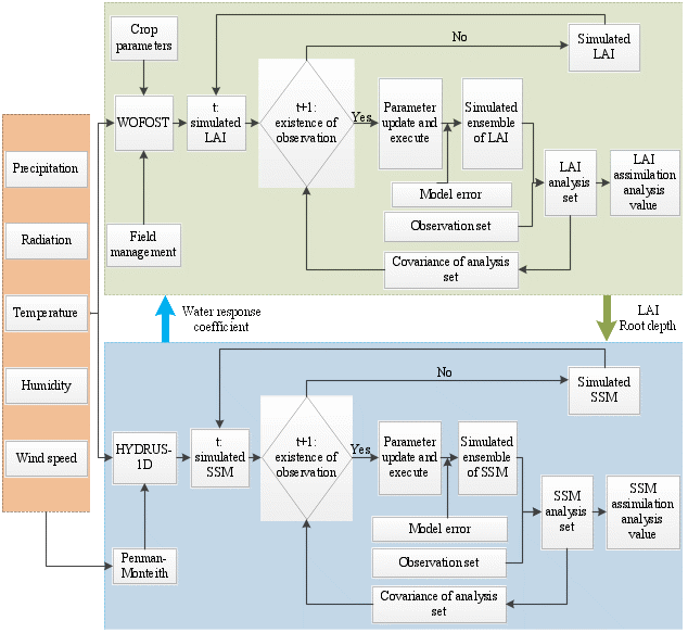 圖1耦合WOFOST與HYDRUS-1D模型同化多參數估算根區土壤水分框架