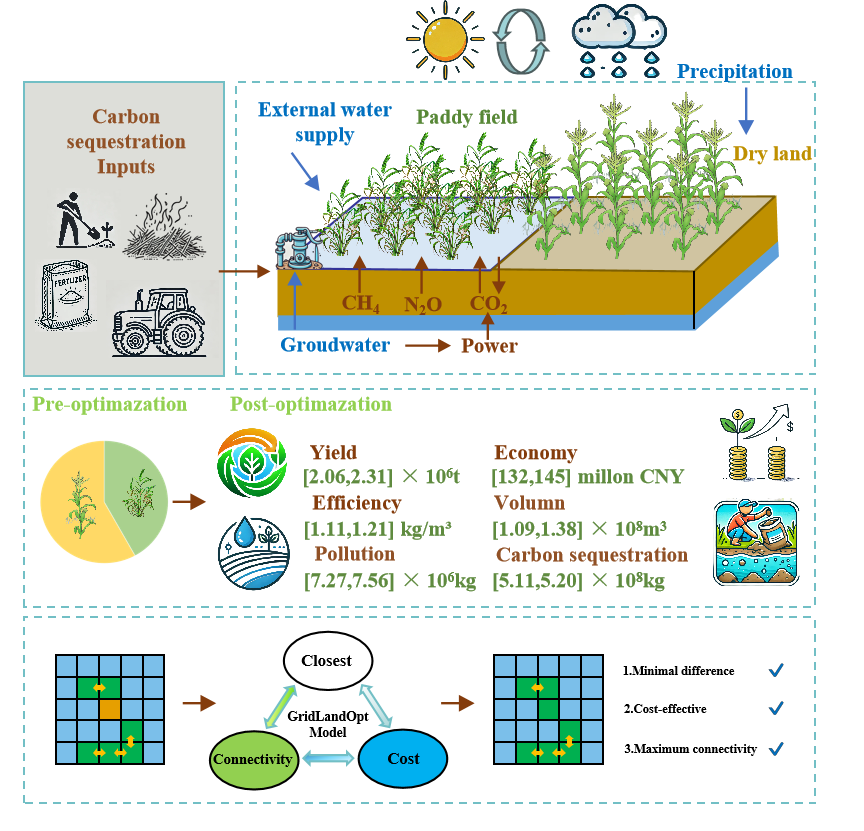 東北地理所在基于水量-效-質-碳-糧-生態多維耦合的水土資源空間優化配置模型研發與應用方面取得重要進展
