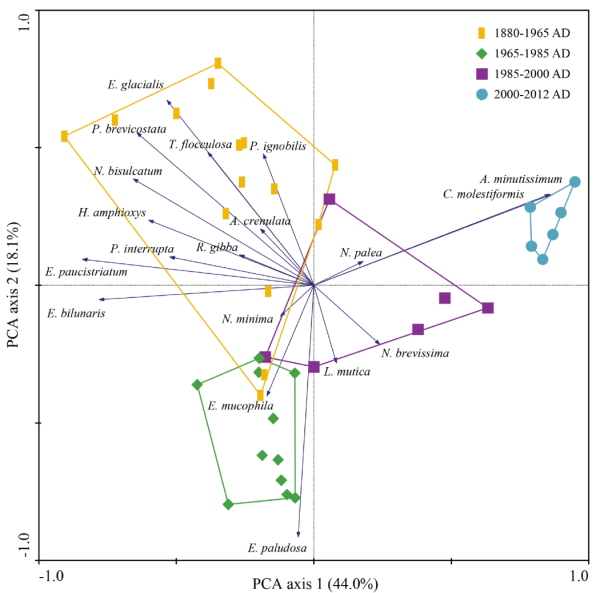 泥炭地土壤碳庫作為重要的生態系統碳庫,具有碳密度高、穩定維持極大的依賴于水淹厭氧環境等特點,全球變化及其誘發的水文環境多變造成泥炭地碳匯功能復雜多變,極易成為“碳炸彈”。氣候變化和人類活動是泥炭地水文環境演變的兩個關鍵驅動因素,隨著我們現在生活在一個新的人類世時代,日益增強的人類活動已經對泥炭地水文環境造成不可忽略的影響。厘清氣候變化和人類活動疊加影響下長時序泥炭地水文環境演變過程及其影響機制,是預測泥炭地碳匯功能如何適應未來環境變化的必要條件。由于長期監測記錄的缺乏,基于古生態學研究手段,利用泥炭沉積記錄這一重要沉積檔案所記錄的泥炭地發育過程以及生態環境演變等重要信息,已成為重建泥炭地生態系統過去環境變化的有效方法,并為了解泥炭地如何適應未來環境變化提供“歷史相似型”。由于硅藻細胞壁的高度硅質化使其廣泛沉積保存于泥炭地中,且硅藻對水文環境變化(水位、營養物質和pH值等)響應敏感,已成為揭示泥炭地歷史時期水文環境演變的關鍵代用指標之一。