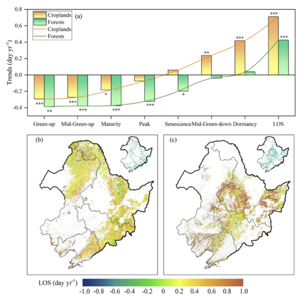 東北地理所在農(nóng)田和森林物候?qū)^(qū)域氣候的生物物理反饋差異及機(jī)制方面取得新進(jìn)展