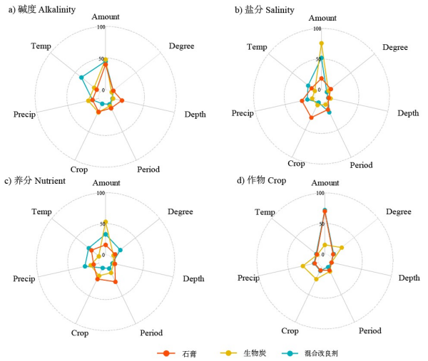 圖3不同改良劑應(yīng)用效果的影響因素相對(duì)重要性解析