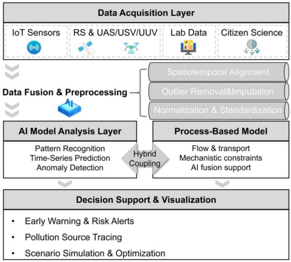 在全球城市化加速與氣候變化疊加影響下,水污染問題日趨嚴(yán)峻,傳統(tǒng)水質(zhì)監(jiān)測(cè)手段因響應(yīng)滯后、覆蓋范圍有限和應(yīng)對(duì)突發(fā)事件能力不足,已難以滿足當(dāng)前水環(huán)境治理需求。人工智能(AI)技術(shù)的快速發(fā)展為解決這一問題提供了新路徑。中國(guó)科學(xué)院東北地理與農(nóng)業(yè)生態(tài)研究所水環(huán)境健康與模擬學(xué)科組在綜述性研究中提出,通過整合AI與物聯(lián)網(wǎng)(IoT)、遙感(RS)及無人監(jiān)測(cè)平臺(tái)(UMP)等技術(shù),構(gòu)建混合建模框架,有助于提升實(shí)時(shí)水質(zhì)監(jiān)測(cè)精度與效率,拓展數(shù)據(jù)獲取范圍,并實(shí)現(xiàn)多源異構(gòu)數(shù)據(jù)的融合與智能分析。