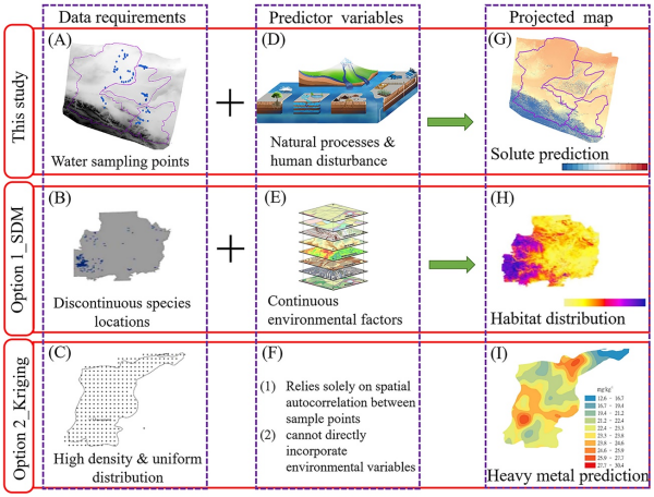 該研究系統(tǒng)采集了淺層地下水、深層地下水和地表水樣本,建立了包含地形、氣候、水力聯(lián)系、土壤特性和人類活動等五大類環(huán)境因子的多維數(shù)據(jù)庫。創(chuàng)新性地將溶質(zhì)濃度類比為生態(tài)系統(tǒng)中的物種"適生性",利用SDM模型模擬其在地下水系統(tǒng)中的空間分布規(guī)律。通過引入端元混合分析(EMMA)、隨機森林和AICc模型選擇等先進算法,有效解決了野外觀測數(shù)據(jù)不足的難題,預測精度較傳統(tǒng)空間插值方法(如克里金法)提升30%以上。