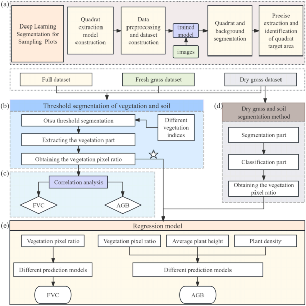 準確、高效地監測草地覆蓋度(FVC)和地上生物量(AGB)兩項核心生態指標,是科學診斷草甸草原退化程度、評估生態系統恢復力、制定精準恢復與管理策略的關鍵基礎。傳統依賴人工野外調查的方法周期長、覆蓋范圍有限。近年來,“天空地一體化”監測體系的發展顯著提升了草地退化監測的速度與準確性。然而,發展高效、精準、低成本的無損監測技術仍是提升生態系統管理科學化水平的迫切需求。