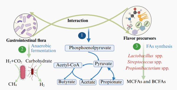 圖2胃腸道微生物群及其代謝活動與羔羊風味前體物質形成與積累過程之間的關系