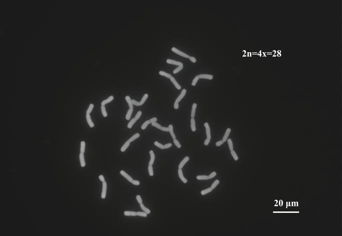 圖3 羊草根尖細胞染色體熒光顯微圖?