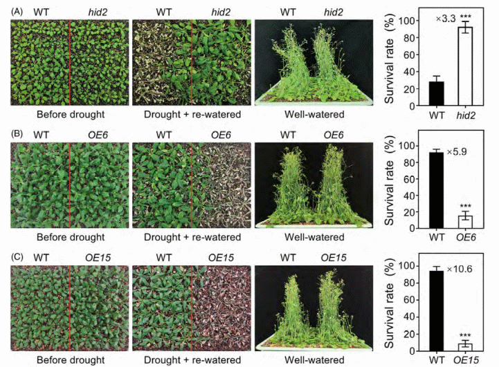 圖1. HID2負向調控擬南芥耐旱性的生理表型