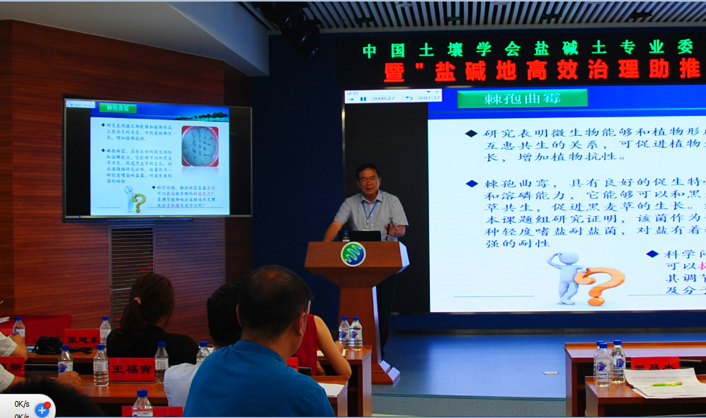 18日下午,來自國內的13位從事鹽堿地研究工作的知名專家做了特邀專題報告。中國科學院新疆生態與地理研究所田長彥研究員,中國科學院南京土壤研究所楊勁松研究員,中國科學院遺傳與發育生物學研究所劉小京研究員,中國科學院地理科學與資源研究所康躍虎研究員,清華大學能源與動力工程系王淑娟教授,西北工業大學應用化學系寧榮昌教授,中南大學薛生國教授,中國農業科學院農業資源與農業區劃研究所程憲國研究員、魯東大學資源與環境工程學院傅金民教授,以及中國科學院東北地理與農業生態研究所王志春研究員、趙凱研究員、田春杰研究員和梁正偉研究員等圍繞我國西北新疆鹽堿地、河套平原鹽堿地、濱海灘涂鹽堿地及中低產田,東北松嫩平原鹽堿地治理研究進展與系統解決方案,以及微波遙感、土壤微生物、生物刺激素等新方法、新技術、新產品在鹽堿地治理上的應用等分別做了專題學術報告。