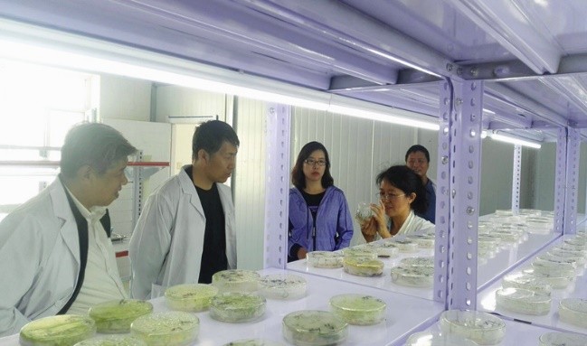 孫國(guó)慶一行考察了中科玉聯(lián)合體東華北中晚熟組生產(chǎn)試驗(yàn)、聯(lián)合體新品種展示田、雙單倍體試驗(yàn)田、雙單倍體育種技術(shù)攻關(guān)實(shí)驗(yàn)室。參觀過程中,學(xué)科組組長(zhǎng)關(guān)義新研究員和敖曼博士分別對(duì)中科玉聯(lián)合體進(jìn)入生產(chǎn)試驗(yàn)的品種、玉米雙單倍體育種技術(shù)的田間操作流程、基于幼胚培養(yǎng)的雙單倍體新技術(shù)工廠化進(jìn)程進(jìn)行了介紹。2017年中科玉科企聯(lián)合體主導(dǎo)的育種聯(lián)盟完成1500自交系的加代,2000份雜交種的組配;2018年預(yù)計(jì)完成6898份雜交組合的測(cè)試任務(wù);2019年聯(lián)盟共有知識(shí)產(chǎn)權(quán)的品種將參加國(guó)家區(qū)域試驗(yàn)。