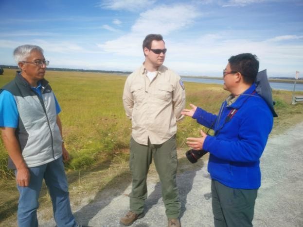 8月1-3日,何興元一行對阿拉斯加州最大的濕地觀測試驗站--楚加奇濕地公園和最大的濱海濕地分布區--基奈河口濕地進行了現場調研。在楚加奇濕地公園,詳細了解了凍土區濕地野外長期定位監測及生態保護工程,調研了該區冰川退化過程及濕地形成與分布現狀,考察了濕地野生動植物資源及棲息地保護與恢復現狀。在基奈河口濕地區,實地考察了河口濕地區的范圍和邊界、濕地植被恢復與保護生態工程、大型水禽、野生動物遷徙及魚類洄游特征及保護現狀,以及河口濕地漁業資源開發與可持續利用相關措施。
