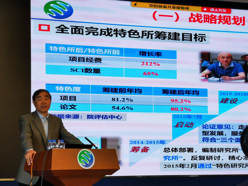 東北地理所所長何興元代表所領(lǐng)導(dǎo)班子做了任期屆滿述職報告。在報告中,何興元從任期目標(biāo)完成情況、一三五規(guī)劃進展、存在問題、體會與建議等方面,對本屆領(lǐng)導(dǎo)班子任職以來的工作和取得的成績進行了回顧和全面總結(jié)。5年來,在習(xí)近平新時代中國特色社會主義思想指導(dǎo)下,在院黨組和長春分院分黨組的正確領(lǐng)導(dǎo)下,所領(lǐng)導(dǎo)班子以推進“農(nóng)業(yè)特色研究所”建設(shè)為核心,緊緊圍繞院黨組提出的“率先行動”目標(biāo)和“一三五”發(fā)展戰(zhàn)略,凝練研究所的重點學(xué)科方向,通過前瞻謀劃,精準(zhǔn)施策,各項事業(yè)快速發(fā)展,全面并超額完成所長任期目標(biāo)。科研經(jīng)費大幅增長,主持國家重大項目11項,“杰青”、“優(yōu)青”項目不斷取得突破;獲國家科技進步二等獎4項、省部級一等獎14項;SCI論文數(shù)實現(xiàn)由年均100篇到300篇的連續(xù)突破,高水平論文比例超過40%;3個學(xué)科進入ESI全球前1%;新引進國家級和院級人才計劃7人,新增國家重大項目首席10人;成立國家濕地研究中心,獲批作物分子計育種國家地方聯(lián)合工程中心、中科院工程實驗室;建立了以“三重大”為導(dǎo)向的差異化薪酬體系和綜合分類考評體系,進所總經(jīng)費和職工收入顯著提升;扎實推進“三嚴(yán)三實”專題教育和“不忘初心、牢記使命”主題教育等,深化黨風(fēng)廉政建設(shè)及廉潔從業(yè)風(fēng)險防控體系建設(shè)。
