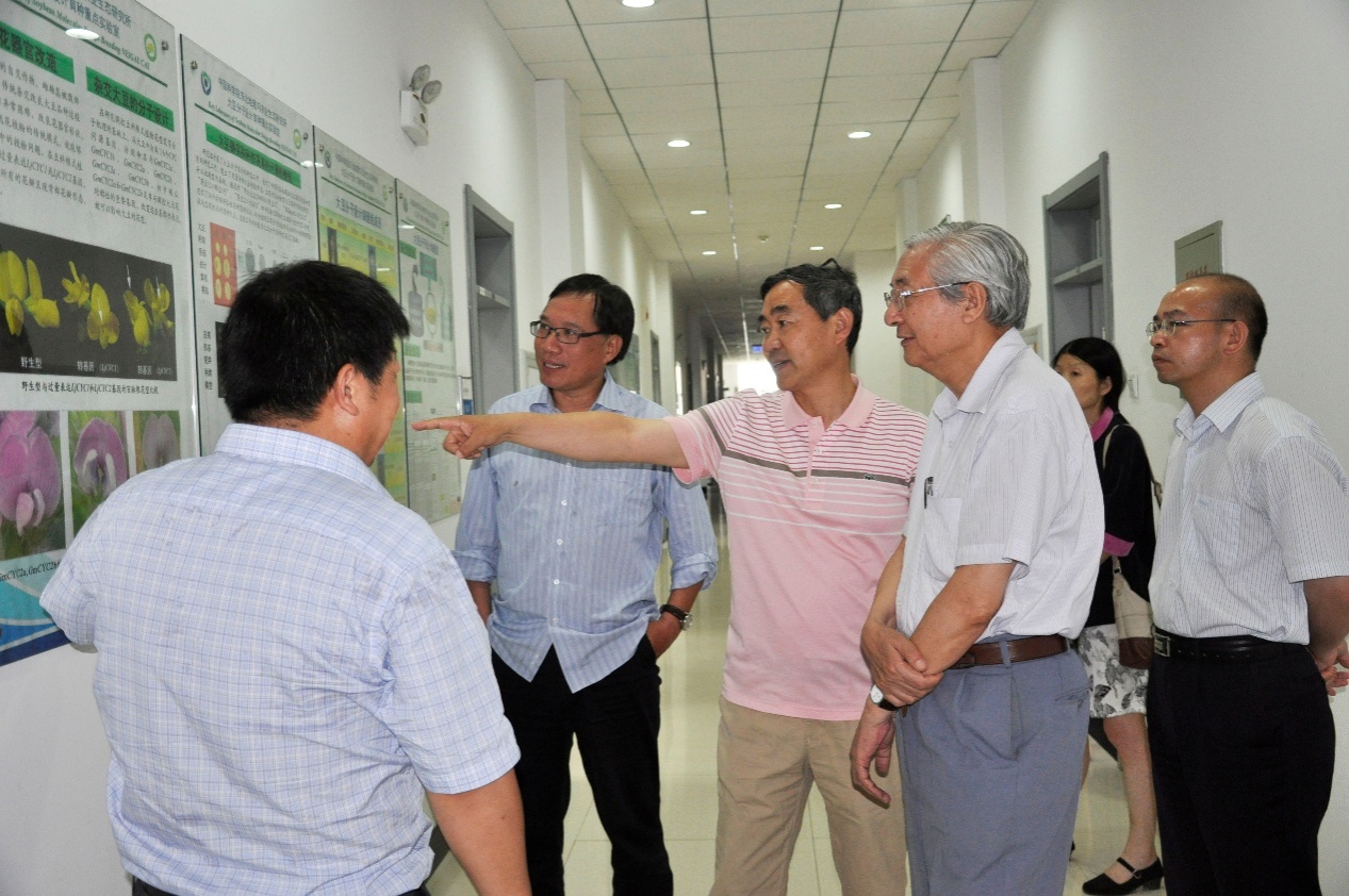 在農業樓,馮獻忠研究員介紹了大豆分子設計育種重點實驗室的工作,并專題匯報了“雜交大豆異交率差異的分子遺傳機制”的研究計劃。許智宏院士和何祖華研究員對于實驗室的工作予以了肯定,對于通過分子設計提高雜交大豆產量的研究工作表示支持,希望繼續加強研究工作,將現代生物技術充分應用到農業生產中去。