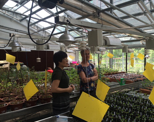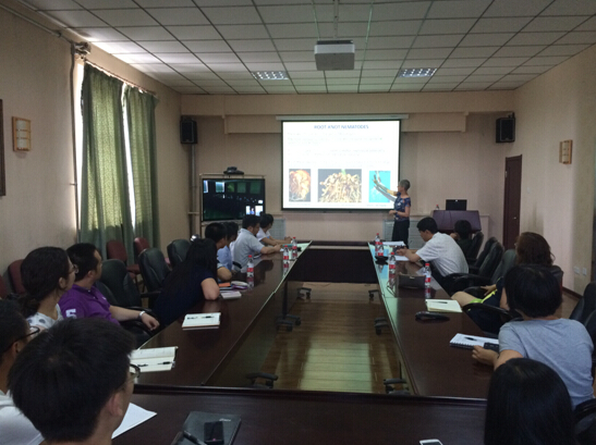 2015年6月17日美國加州大學戴維斯分校Valerie Williamson教授應農(nóng)田有害生物控制學科組王從麗研究員邀請,受國家外國專家局資助來所進行合作研究和學術(shù)交流。6月18日下午在哈區(qū)進行學術(shù)報告“The chemical ecology of root-knot nematode targeting to plant entry sites”,長春視頻,報告主要從根結(jié)線蟲基因組學、遺傳機制、北方根結(jié)線蟲的遺傳學、線蟲的寄主范圍和抗性、根結(jié)線蟲怎樣獲得侵染新寄主的能力、化學信號(線蟲對寄主的反映及相互作用)等內(nèi)容進行交流。所里的很多科研人員和研究生們都積極參加并踴躍發(fā)言,達到了學術(shù)交流的目的。王從麗研究員向美國專家介紹了實驗室的研究方向及進展,專家對該學科的幾方面研究進行了充分討論,并給予充分的肯定,為了學科組今后更順利和更好的發(fā)展,專家提出了寶貴的建議,并對研究生的研究方案和方法進行了詳細的指導。Williamson教授又到中國科學院海倫生態(tài)實驗站進行了參觀訪問,韓曉增站長詳細地為她介紹了海倫試驗站長期定位實驗,使Willamson教授對東北黑土及其相關(guān)的研究有了更深的了解。Williamson教授和王從麗研究員在線蟲識別植物信號的鑒定與應用方面有了更深一步的討論,她的訪問對促進中國科學院東北地理與農(nóng)業(yè)生態(tài)研究所與美國加州大學的持續(xù)合作奠定了基礎。