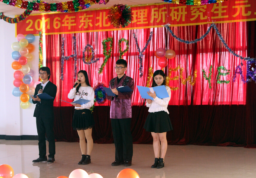 2015年12月30日下午,由研究生部主辦、研究生會承辦,以“青春韶華,炫彩東地”為主題的2016年研究生元旦聯(lián)歡會于餐廳二樓舉行。所黨委書記蘇陽、副所長李秀軍、紀委副書記邵慶春、人教處副處長郭琳、研究生部主任王玉榮、研究生部侯雪瑩、吳秋菊及全體研究生和部分青年職工參加了此次聯(lián)歡會。