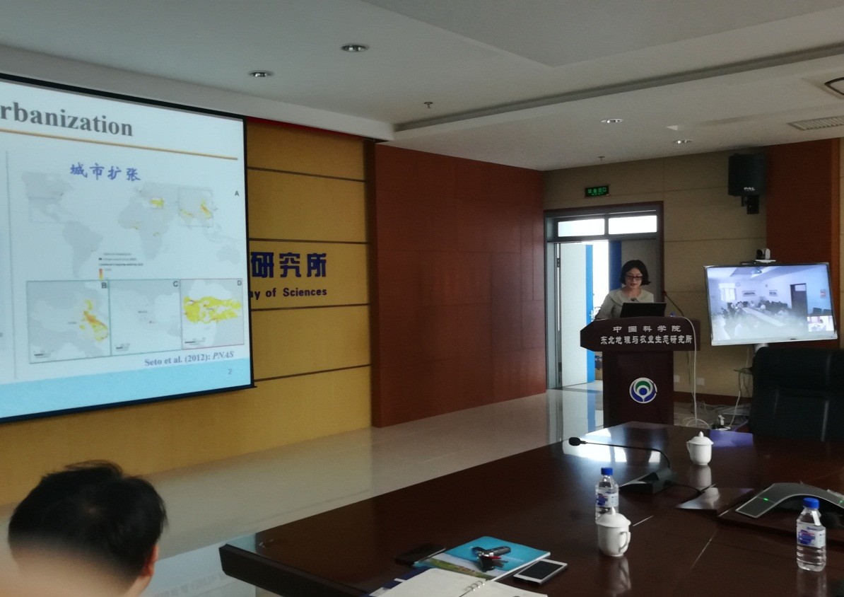 2017年6月27日上午,應何興元所長、王文杰研究員邀請,北京大學趙淑清教授來東北地理所做了題為“中國的城市擴張及生態(tài)影響”的學術報告。報告會由鄭海峰博士主持,何興元所長、黃鐵青副所長、田春杰研究員、宋開山研究員等師生參加了此次報告會,沈陽應用生態(tài)研究所陳瑋研究員等專家通過視頻連線形式參與了討論與交流。