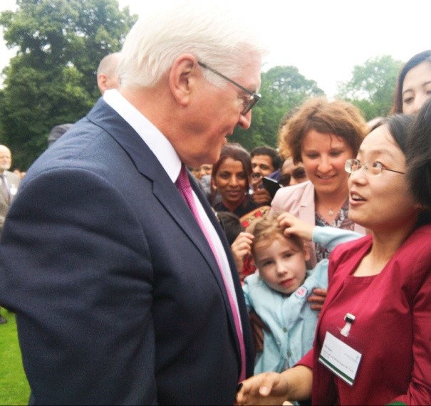 2017年6月29日,我所孫新博士與來自79個(gè)國家的洪堡學(xué)者在德意志聯(lián)邦共和國總統(tǒng)府望景宮,一起得到德國總統(tǒng)弗蘭克-瓦爾特·施泰因邁爾(Frank-Walter Steinmeier)先生和德國洪堡基金會(huì)主席赫爾穆特·施瓦茨(Helmut Schwarz)教授的集體接見,并與施泰因邁爾總統(tǒng)面對面交談和合影留念。