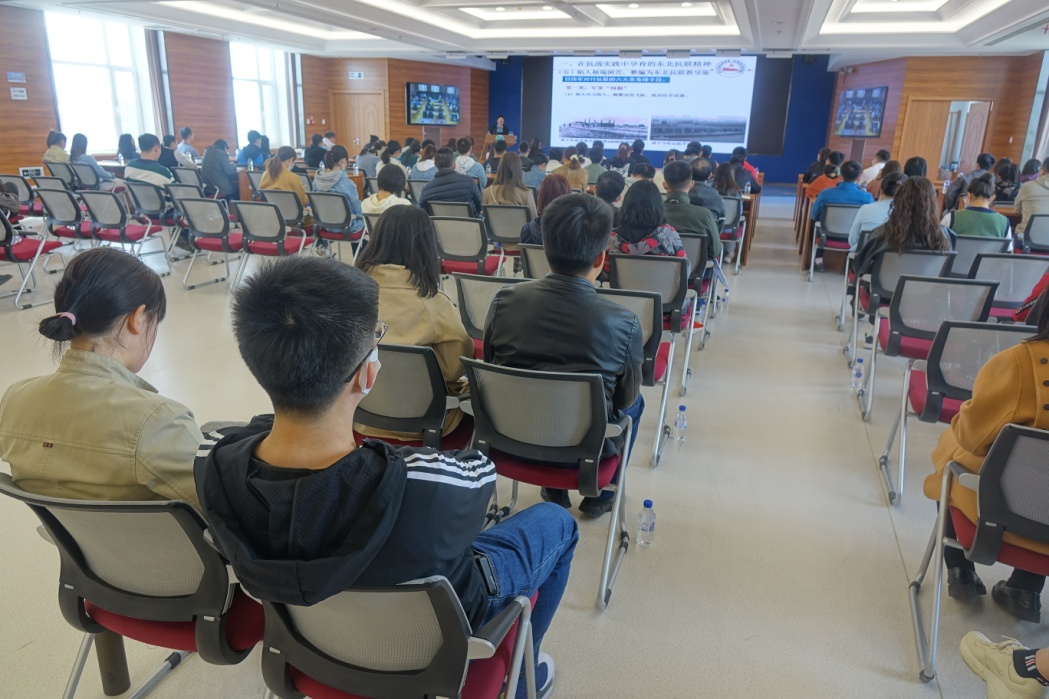 會議邀請中共吉林省委黨校高健飛同志以《東北抗聯(lián)精神及其當(dāng)代價值--青年人的使命與擔(dān)當(dāng)》為題作專題報告,高健飛從“在抗戰(zhàn)實踐中孕育的東北抗聯(lián)精神;抗聯(lián)精神是中華民族歷史上的寶貴精神財富;弘揚偉大的東北抗聯(lián)精神,肩負起新時代中國共產(chǎn)黨的初心和使命”三個方面深入講述了楊靖宇等抗日英雄勇赴國難忠貞報國的愛國主義精神、不畏苦難百折不撓的艱苦奮斗精神、視死如歸前赴后繼的不畏犧牲精神以及堅貞不渝抗戰(zhàn)必勝的信仰信念,報告獨到深刻,分析透徹,重點突出,具有很強的理論性和現(xiàn)實針對性,多次贏得現(xiàn)場青年們的熱烈掌聲。會后大家紛紛表示,通過報告對東北抗聯(lián)歷史有了進一步了解,對偉大的東北抗聯(lián)精神有了更深地感悟。