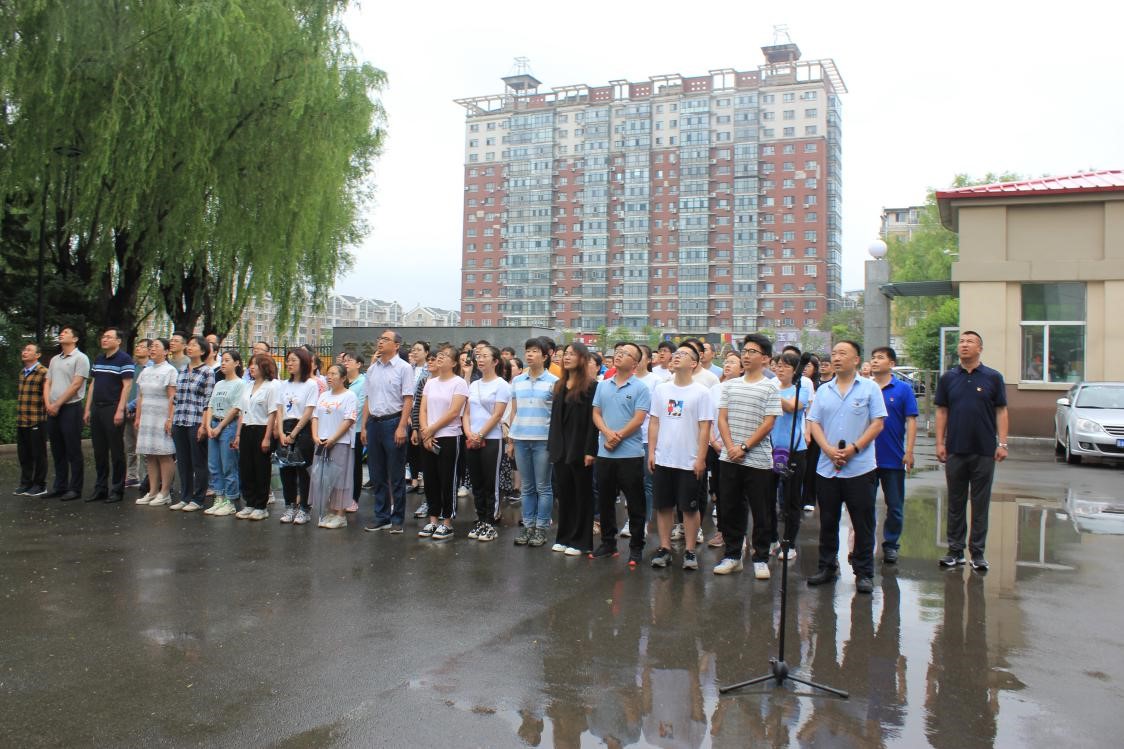 伴隨著莊嚴雄壯的國歌聲,鮮艷的五星紅旗冉冉升起,全體人員莊嚴肅立,齊唱國歌,行注目禮。
