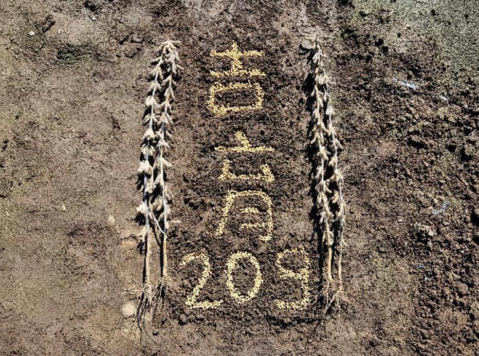 2021年大豆高產攻關示范田采用吉林省農業科學院培育的高產大豆新品種吉育209,示范面積65畝,攻關產量目標250-300kg。大豆行距65cm,密度22萬株/hm2。適時進行秋整地,結合整地、起壟施入底肥每公頃磷酸二胺150 kg、尿素50 kg、硫酸鉀50 kg,施肥深度10cm。應用寡糖生物農藥、氨基酸液肥、微生物菌劑等提高大豆免疫力;應用S-誘抗素及白僵菌等防治大豆害蟲;采用0.1%蕓苔素內酯進行種子包衣;采用26.7%噻酮磺隆·異噁唑草酮懸浮劑每公頃500ml進行苗后莖葉除草。