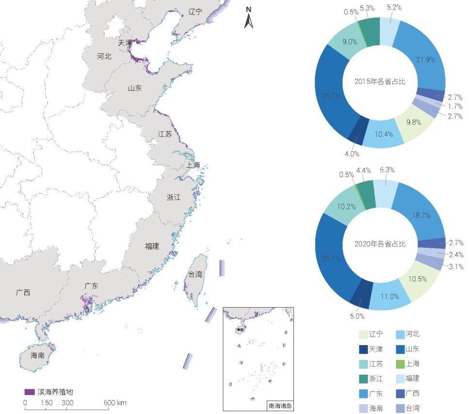 2020 年中國濱海養(yǎng)殖池空間分布格局