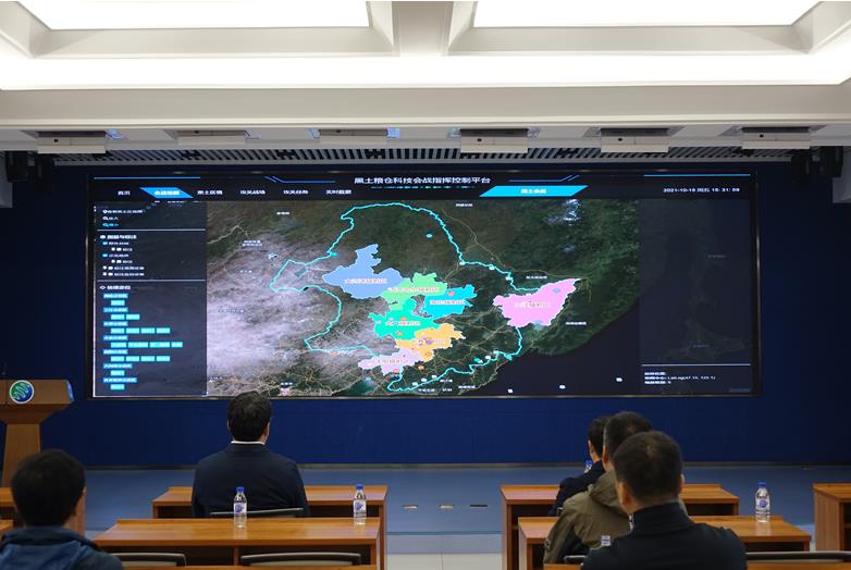 胡兆民一行首先調(diào)研了大豆分子設(shè)計育種重點(diǎn)實(shí)驗(yàn)室、中科院黑土區(qū)農(nóng)業(yè)生態(tài)重點(diǎn)實(shí)驗(yàn)室的相關(guān)工作。于慧、張延博士及王志春研究員針對本領(lǐng)域相關(guān)科研進(jìn)展和主要發(fā)展前景進(jìn)行了介紹;隨后共同參觀了“黑土糧倉”科技會戰(zhàn)指揮中心,從信息化平臺上觀看并了解各示范區(qū)的建設(shè)進(jìn)展?fàn)顩r。