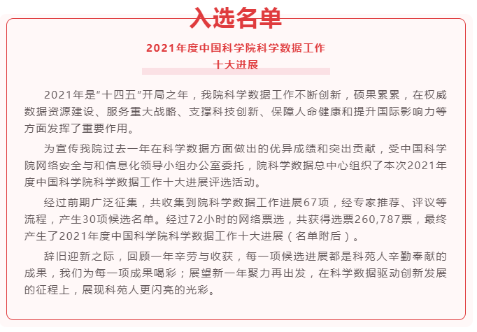 2021年度中國科學院科學數據工作十大進展具體如下: