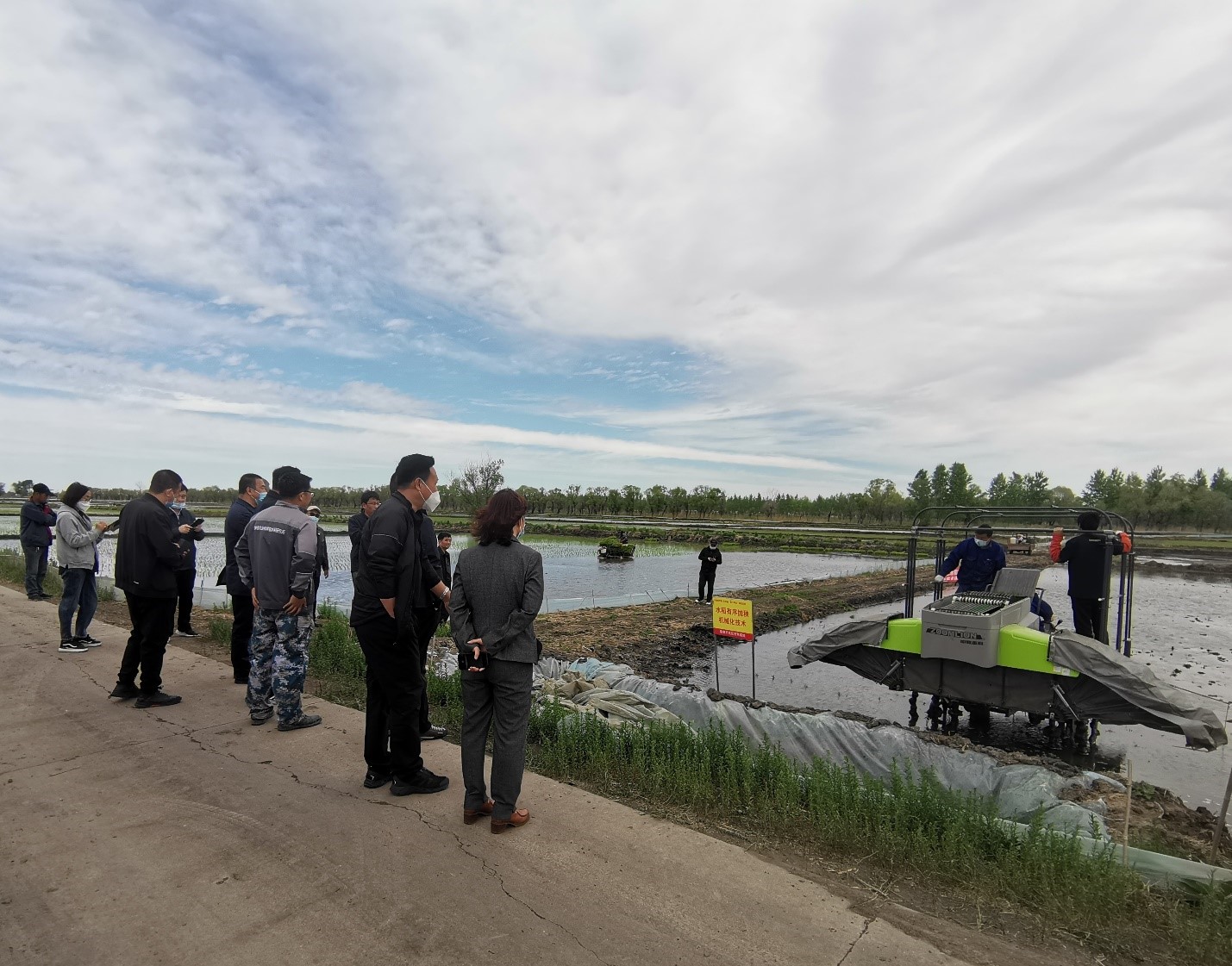 大安示范區鎮賚基地召開水稻機插同步側深施肥技術與水稻有序拋秧機械化技術現場觀摩會