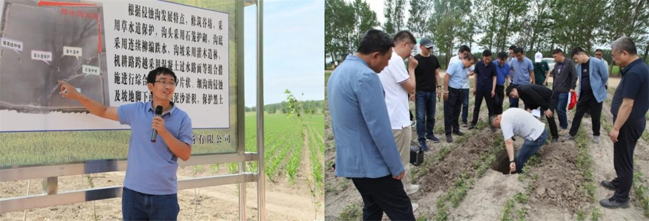 6月17日上午,專家組及項目團隊在曙光農場進行實地研討,實地講解了“黑土糧倉”科技會戰專項工作中試驗示范的新品種、新技術、新模式,實地踏查核心技術示范樣板田。項目負責人劉煥軍研究員講解了小流域治理技術;姜佰文教授、劉峰研究員、李彥生副研究員、魏占波和王玲莉等技術專家分別對白漿土旱田障礙消減的各項改良技術做以詳細介紹。隨后,專家組及項目團隊一行現場觀摩了兩個核心示范地塊的實際情況,就白漿土土壤剖面進行了交流與探討。專家組高度肯定了“黑土糧倉”科技會戰的優勢,對于推進白漿土旱田障礙消減與地力提升模式,促進綠色可持續發展具有重要的先導意義。