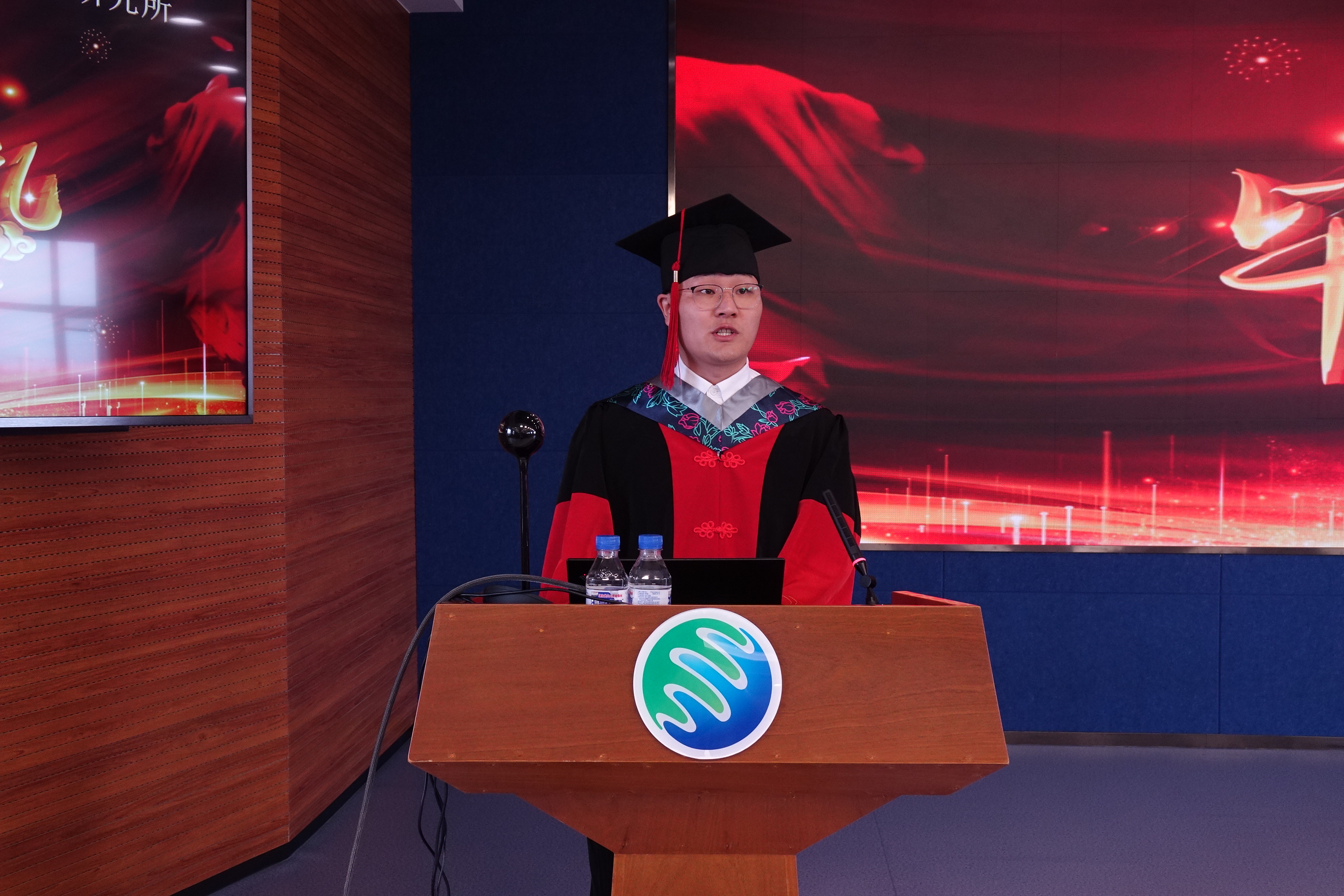 博士畢業(yè)生崔虎、碩士畢業(yè)生李紹陽代表全體博士和碩士畢業(yè)生發(fā)言,他們的發(fā)言回顧了入學時的欣喜、治學時的艱辛、迷茫時的求索、成果發(fā)表時的激動,表達了對母校的眷戀、對導師的感激。他們對未來滿懷憧憬,并勵志用青春和熱血報效祖國。他們以優(yōu)異的成績畢業(yè),為自己在東北地理所的求學生涯提交了圓滿的答卷。