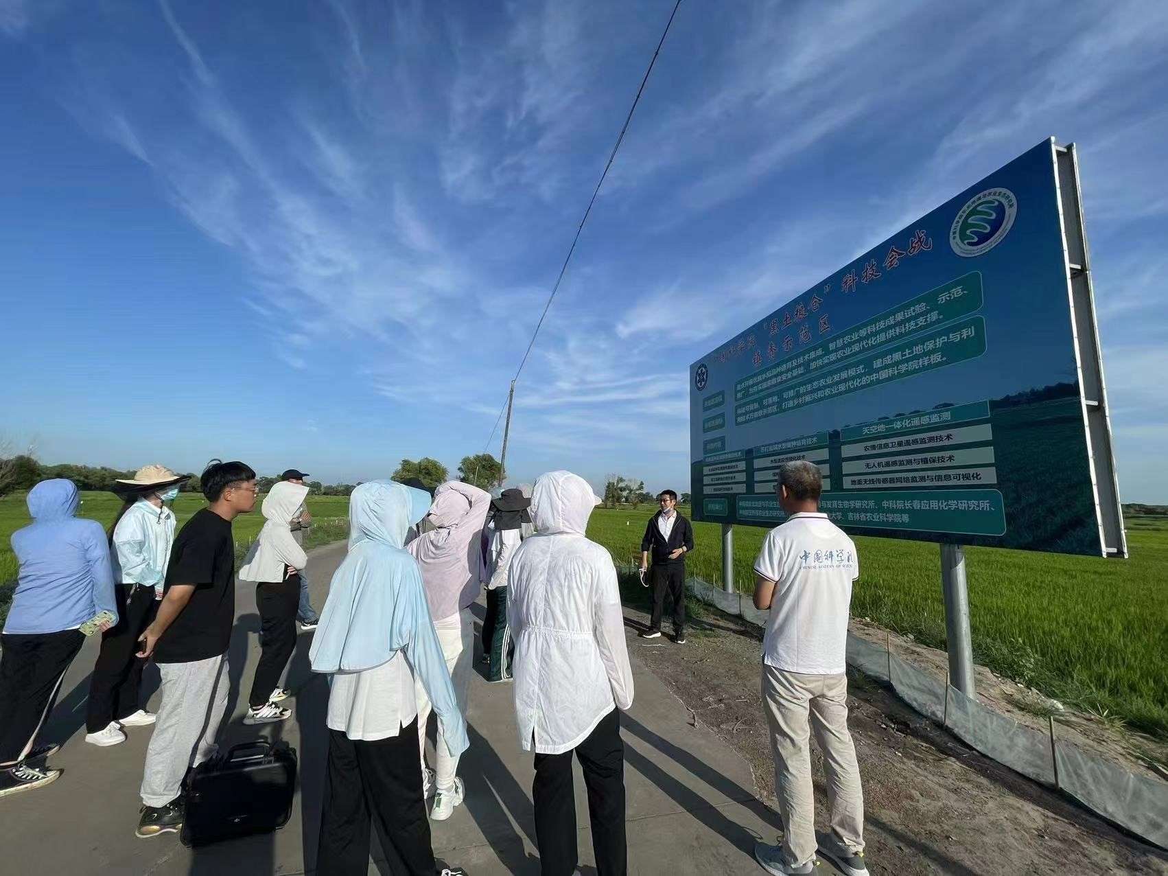 在大安紅崗子鹽堿地水田萬畝示范區(qū),王明明副研究員介紹了水田示范區(qū)的實施背景、目標(biāo)和總體技術(shù)方案,詳細講解了重度鹽堿地磷石膏改良技術(shù)及磷石膏+有機肥復(fù)合改良技術(shù)、耐鹽堿水稻品種東稻122、水稻密植抗逆栽培技術(shù)、水稻機插同步側(cè)深施肥技術(shù)、生長調(diào)節(jié)促生技術(shù)、水稻重大害蟲性信息素誘控技術(shù)等的示范及應(yīng)用推廣情況。在鎮(zhèn)賚四方坨子示范基地,王明明重點講解了新引進的水稻機插側(cè)深同步施肥技術(shù)、水稻有序拋秧技術(shù)、水稻重大害蟲性信息素誘控技術(shù)等技術(shù)的示范情況,計劃大面積開展綠色防控技術(shù)示范區(qū)情況。李曉峰研究員介紹了無人機遙感技術(shù)在水田物候和植保監(jiān)測方面的應(yīng)用示范。文波龍副研究員介紹了與企業(yè)合作開展稻田蟹種培育、成蟹養(yǎng)殖的推廣應(yīng)用工作進展。