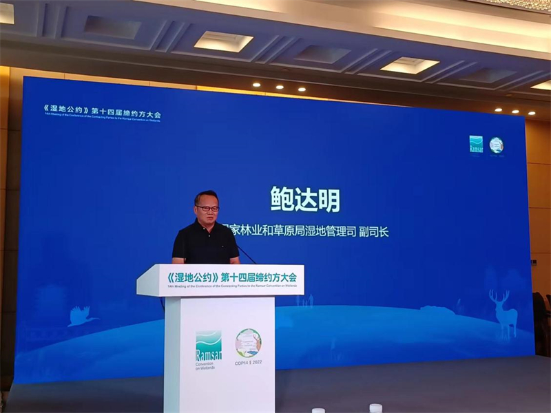 國(guó)家濕地研究中心副理事長(zhǎng)、國(guó)家林業(yè)和草原局濕地管理司鮑達(dá)明副司長(zhǎng)致辭