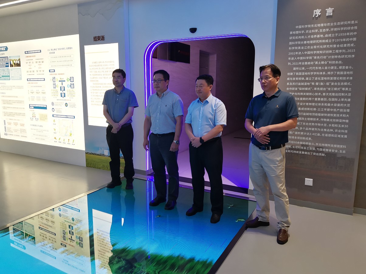 仲志余一行首先參觀了“黑土糧倉”科技會戰指揮中心宣傳展示平臺,姜明詳細介紹了研究所的歷史沿革、學科布局、科研項目、平臺建設、人才隊伍、黨建工作、戰略規劃等基本概況。