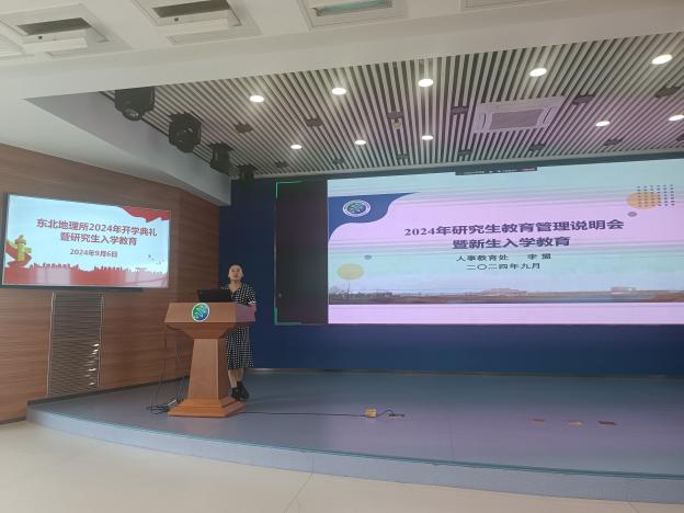 9月6日,東北地理所舉行2024年開學(xué)典禮暨研究生入所教育。所長、黨委書記姜明,副所長、黨委副書記王宗明,副所長李向楠,所務(wù)委員祝惠,人事教育處處長郭琳,人事教育處副處長兼研究生教育管理部主任苑春宇,研究生導(dǎo)師代表及2024年新入所研究生、聯(lián)培生共計150余人參加活動。開學(xué)典禮由苑春宇主持。