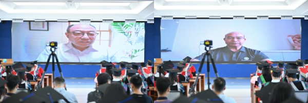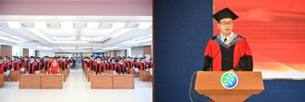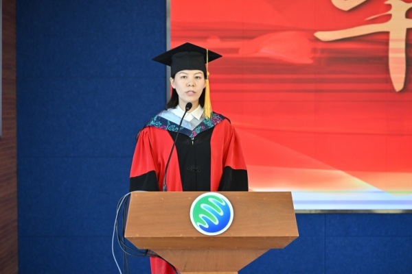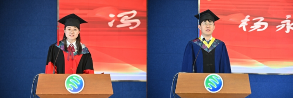 博士畢業(yè)生馮明銘、碩士畢業(yè)生楊永傳代表全體博士和碩士畢業(yè)生致畢業(yè)感言。兩位畢業(yè)生代表回顧學習生涯、分享科研感悟,感念師恩,并表達了對母校的不舍之情。經(jīng)過這段求學生涯的錘煉,他們在挫敗中成長,在堅持中奮發(fā),他們自立自強,奔赴夢想。