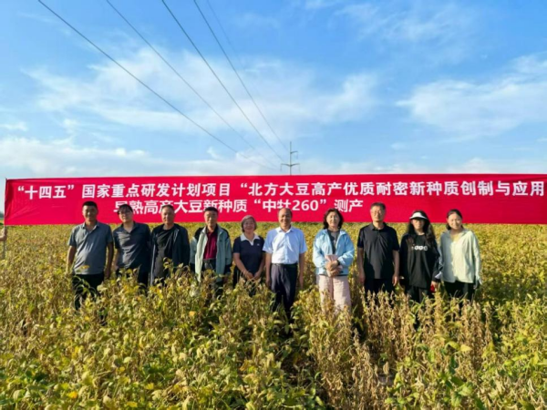 2025年8月30日,在新疆農墾科學院石河子基地,專家組對劉寶輝團隊承擔的“北方大豆高產新種質創制與應用項目中任務—早熟高產、理想株型種質創制”任務(2021YFD1201101-02)中理想株型種質“中牡260”(北豆40熟期組)小面積示范田進行測產。專家組由中國農業科學院油料作物研究所周新安研究員任組長、成員有新疆農墾科學院研究員戰勇、新疆農業科學院研究員叢花、石河子大學教授劉峰、黑龍江省農業科學院牡丹江分院研究員任海祥。大豆育種專家杜維廣研究員、國家重點研發計劃項目負責人張淑珍教授、東北地理所大豆分子育種學科組翟紅研究員等全程參加本次測產。