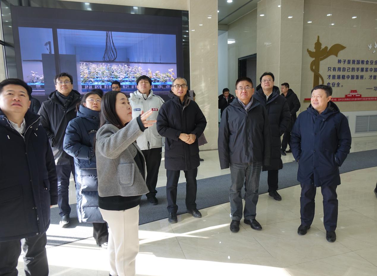 在東北亞種質資源研究中心,于慧副研究員詳細匯報了大豆分子設計育種體系、高通量作物表型組平臺等工作進展情況,冷建田高級工程師介紹了“東生”系列大豆新品種的研發(fā)成果及推廣應用情況,并匯報了東生大豆在山東省種植成效。