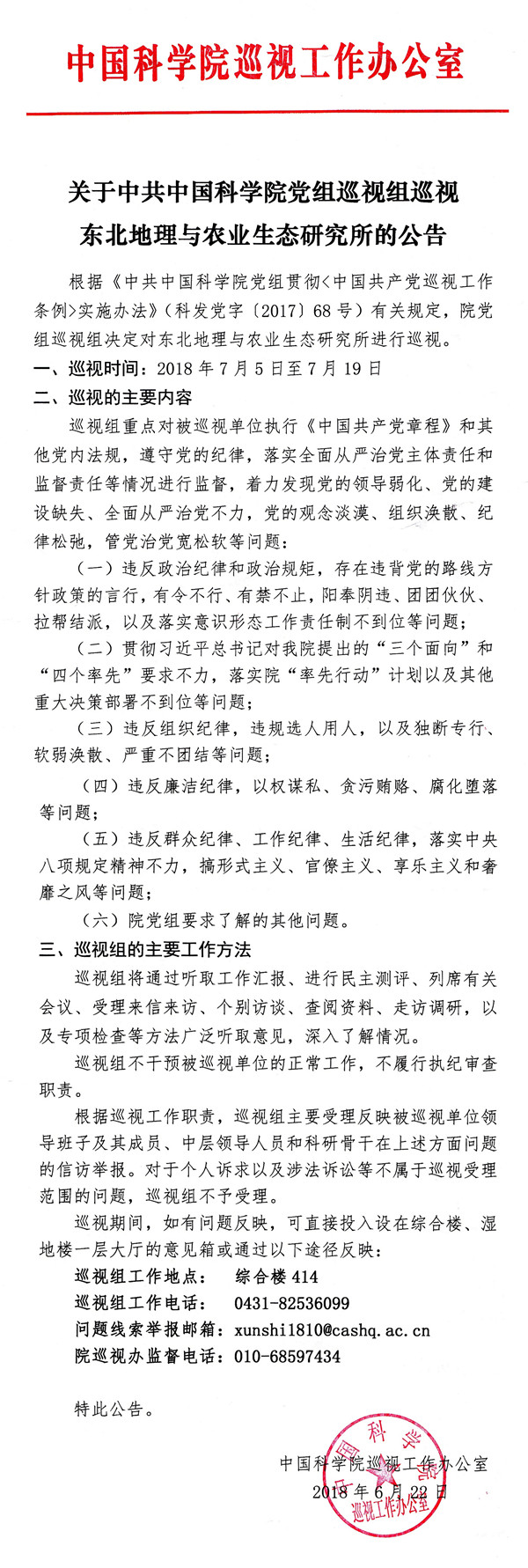 關于中共中國科學院黨組巡視組巡視東北地理與農(nóng)業(yè)生態(tài)研究所的公告