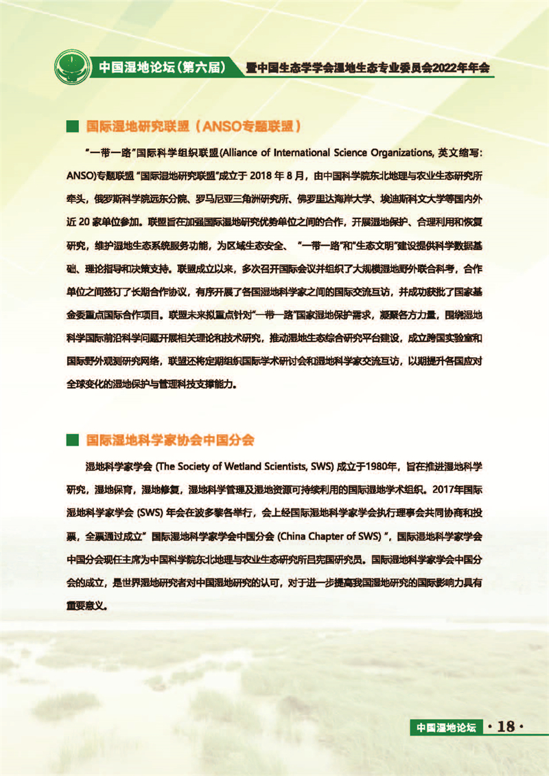 中國濕地論壇(第六屆)暨中國生態學學會濕地生態專業委員會2022年年會 會議手冊