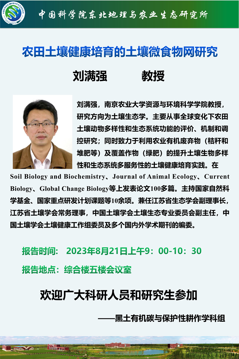 農(nóng)田土壤健康培育的土壤微食物網(wǎng)研究-劉滿強(qiáng) 教授