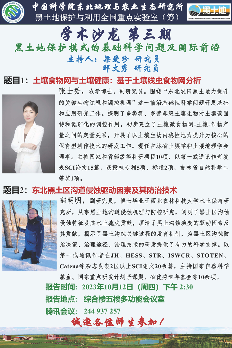 黑土地保護與利用全國重點實驗室(籌)學術沙龍 第三期