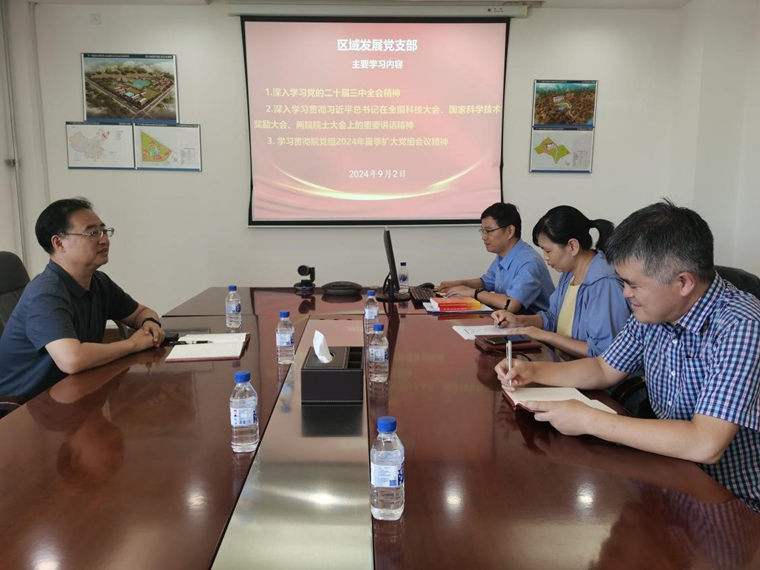 9月2日,區域發展黨支部在綜合樓5樓會議室召開支部會深入學習黨的二十屆三中全會精神,會議由支部書記劉文新主持。